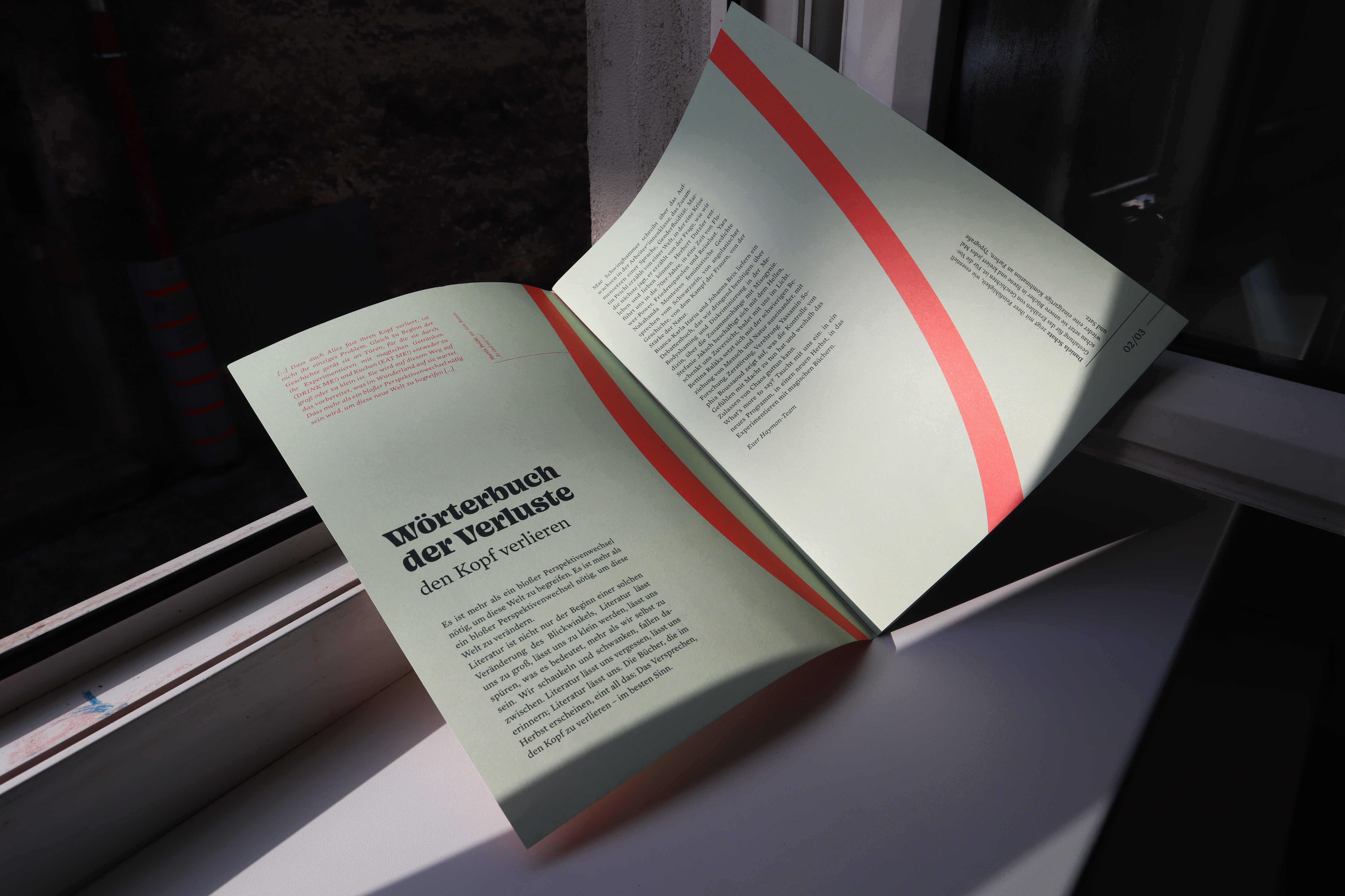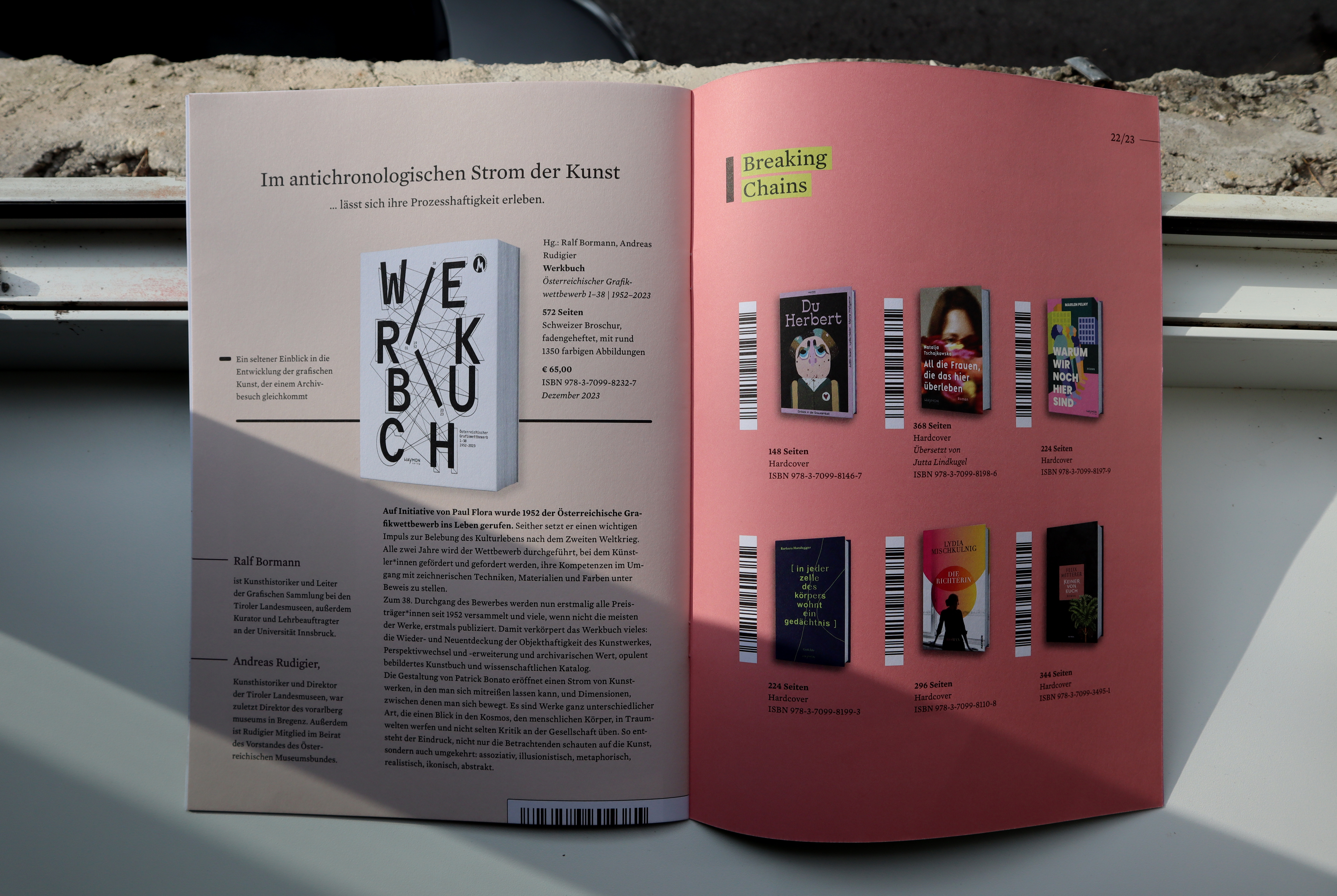 Conception and design of the biannual publishing preview of Haymon Verlag – produced in a climate-positive manner and printed cradle-to-cradle.